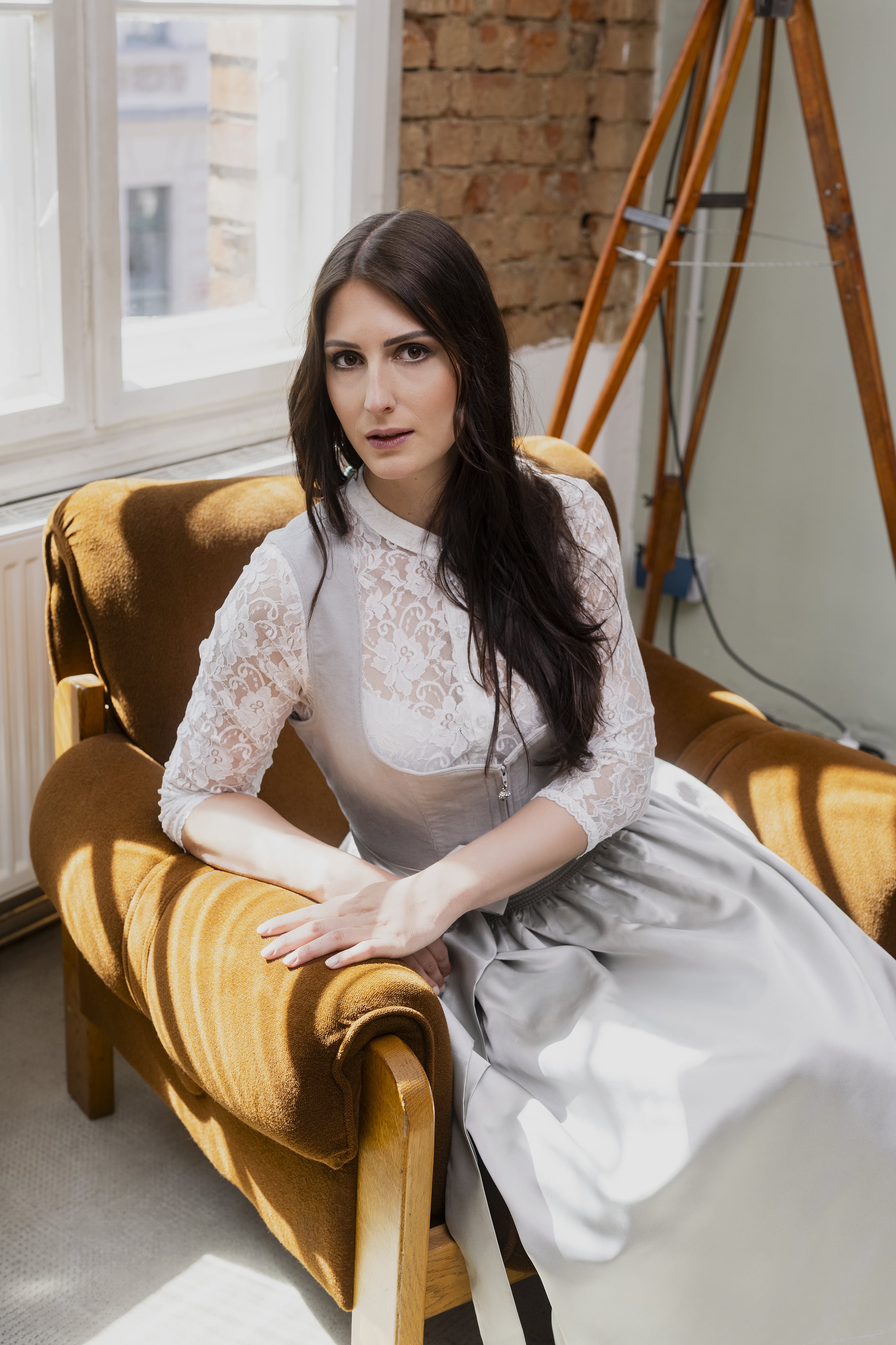 • Stilvolles Dirndl in sanftem Cloud Grey vom Designer-Label Wiesnstern